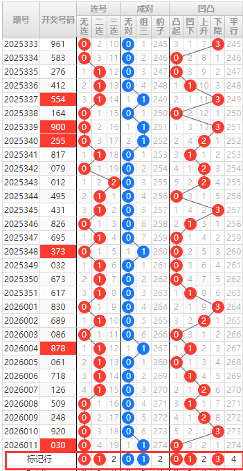 排列三连号成对凹凸分析走势图