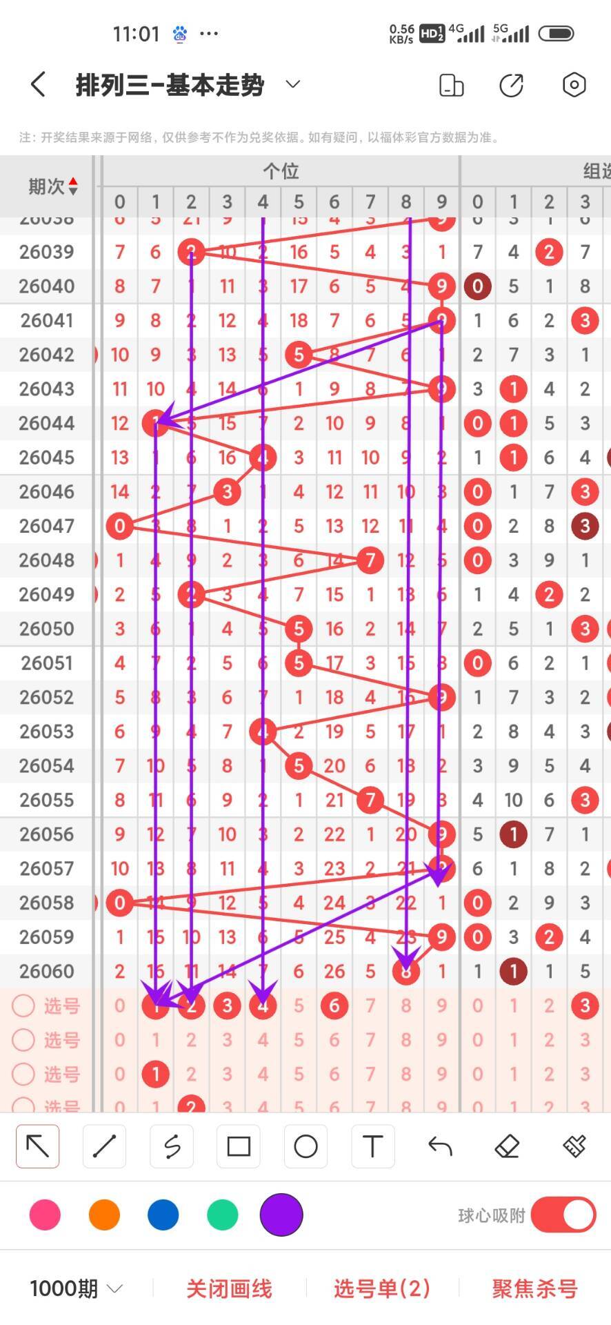 2026061期上期个位开出偶数8,我们通过走势图来看百位上500期,0-9下号数据和最大遗漏数据,其中0出现43次,1出现54次,2出现51次,3出现61次,4出现52次,5出现50次,6出现44次,7出现52次,8出现52次,9出现41次,0-9目前3下号最多,我们在回过头来看最大遗漏下号,0遗漏45次,1遗漏45次,2遗漏46次,3遗漏36次,4遗漏39次,5遗漏53次,6遗漏44次,7遗漏24次,8遗漏40次,9遗漏54次,目前遗漏中59遗漏最大,通过上面的走势分析,我们可以看出目前个位上走势比较好的号码是大号,我们可以关注下,1236号码走势就有点冷淡,我们可以防守,今天个位我们重点关注13629,具体看下面走势图