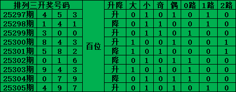 排列三是从0-9每期开出3个号码,截至2025305期三个位置最大遗漏的是32期十位的6号。