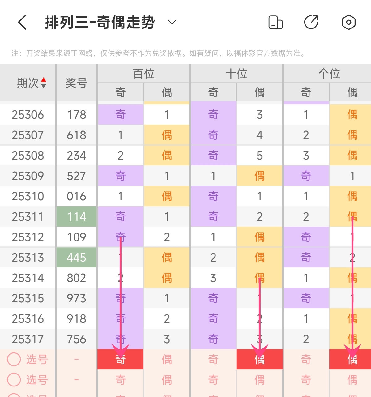 首先让我们回顾一下上期排列三第2025317期开奖号码为756,为组六形态,大小比为3:0,奇偶比为2:1,跨度为2,和值为18。