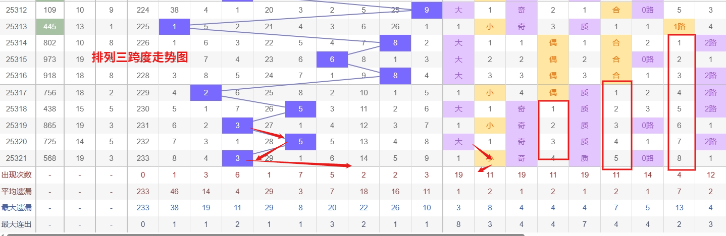 排列三 跨度分析:从上图可以看出近100期的跨度大小比约为46比54,跨度奇偶比约为48比52总体来看还是比较均衡的,但跨度大小之间有点差异。我们再从历史开出3跨后下一期4跨度数据来做参考。最近10期跨度大小比约为6:4期开出大数跨度过多返回小数跨度的概率更高一点。历史开奖近2期出3跨以后的走势为247期开出3跨后下一期走4跨走出1振幅,第264期开出3跨后下一期走7跨走出4振幅第276期开出3跨后下一期开出6跨走出3个振幅。连续多期小振幅,近期排列三跨度走势分析,跨度6正处于明显的热出阶段,其活跃度较高,短期内存在连下的可能,这种热态惯性值得持续关注。与此同时,跨度4已经遗漏长达29期,远超其理论出现周期,冷态已至临界点,技术性回补的压力显著增大,属于重点防范的冷转热对象。综合来看,当前阶段在顺势追踪6跨热号的同时,对4跨的极端冷态保持高度警惕,本期预计跨度遵从历史会走出小振幅,出3跨度后容易走出1到4个跨度振幅的对称形态,跨度走出1到4个振幅看好的跨度有4167跨,所以第2025322期排列三跨度推荐4167跨。本文由一起彩钱是生命动力所著,请勿转载