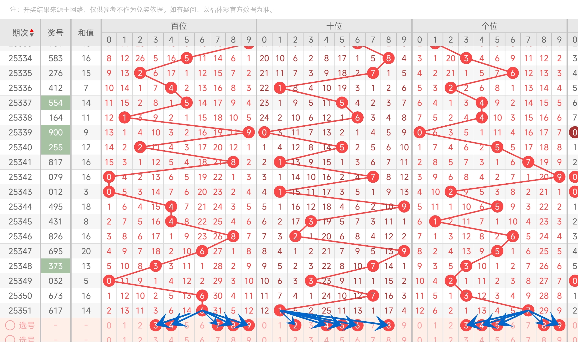 二、通过和值走势分析: