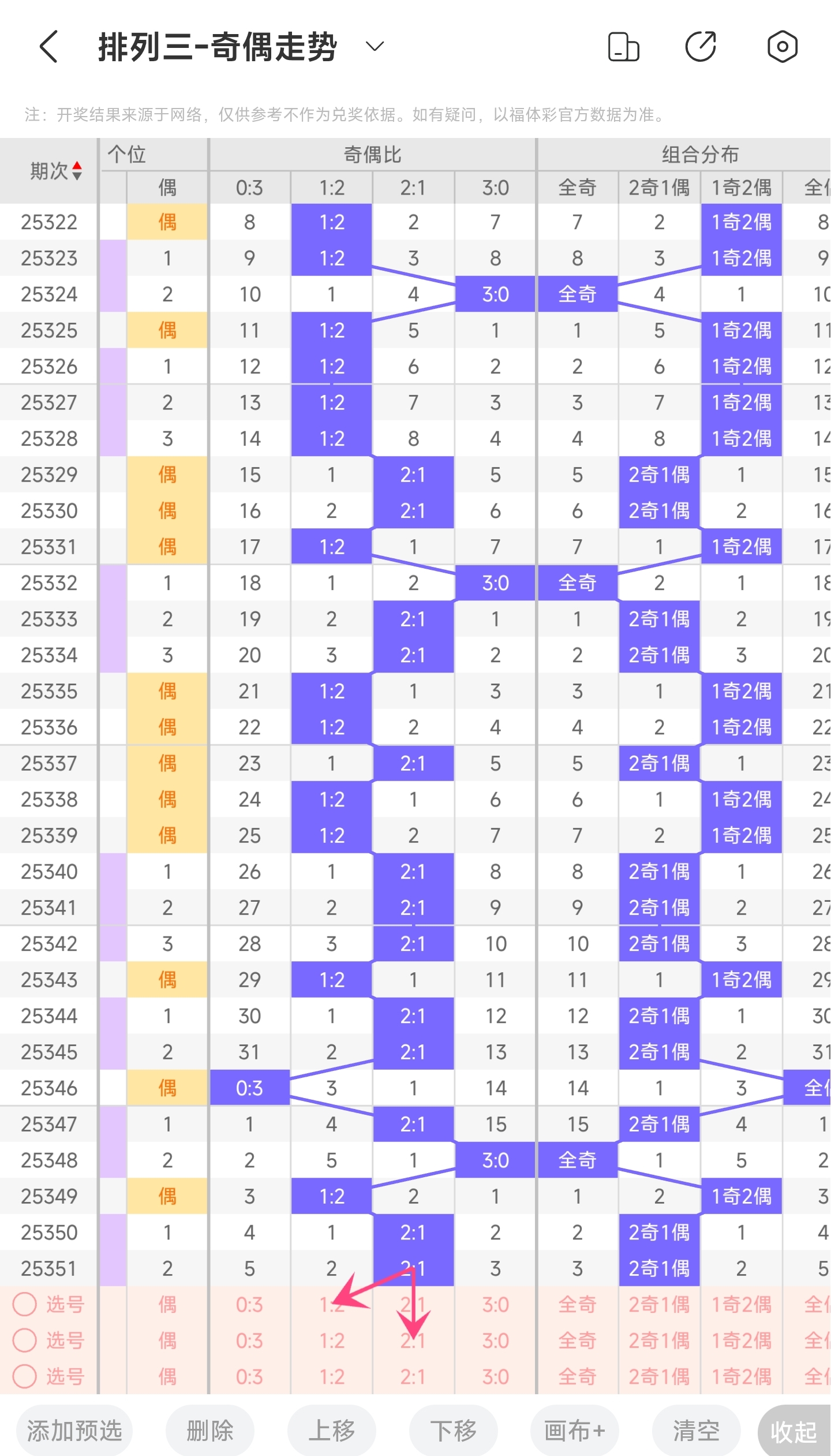 三、通过奇偶走势分析: