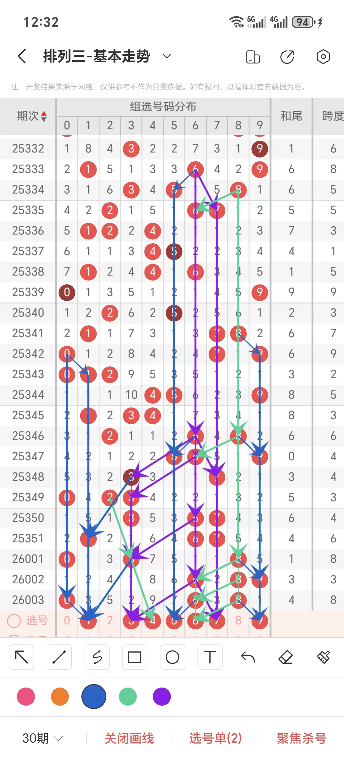 六 排列3第26004期组选号码走势分析
