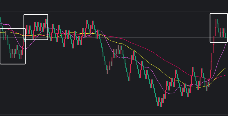 可以看到一些规律,在白框中,如果一致,那么接下来这些跨度也会出。