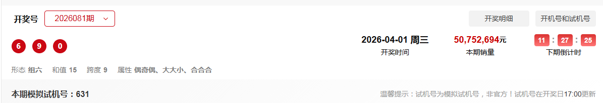 26080期命中全部号码 7,7,0