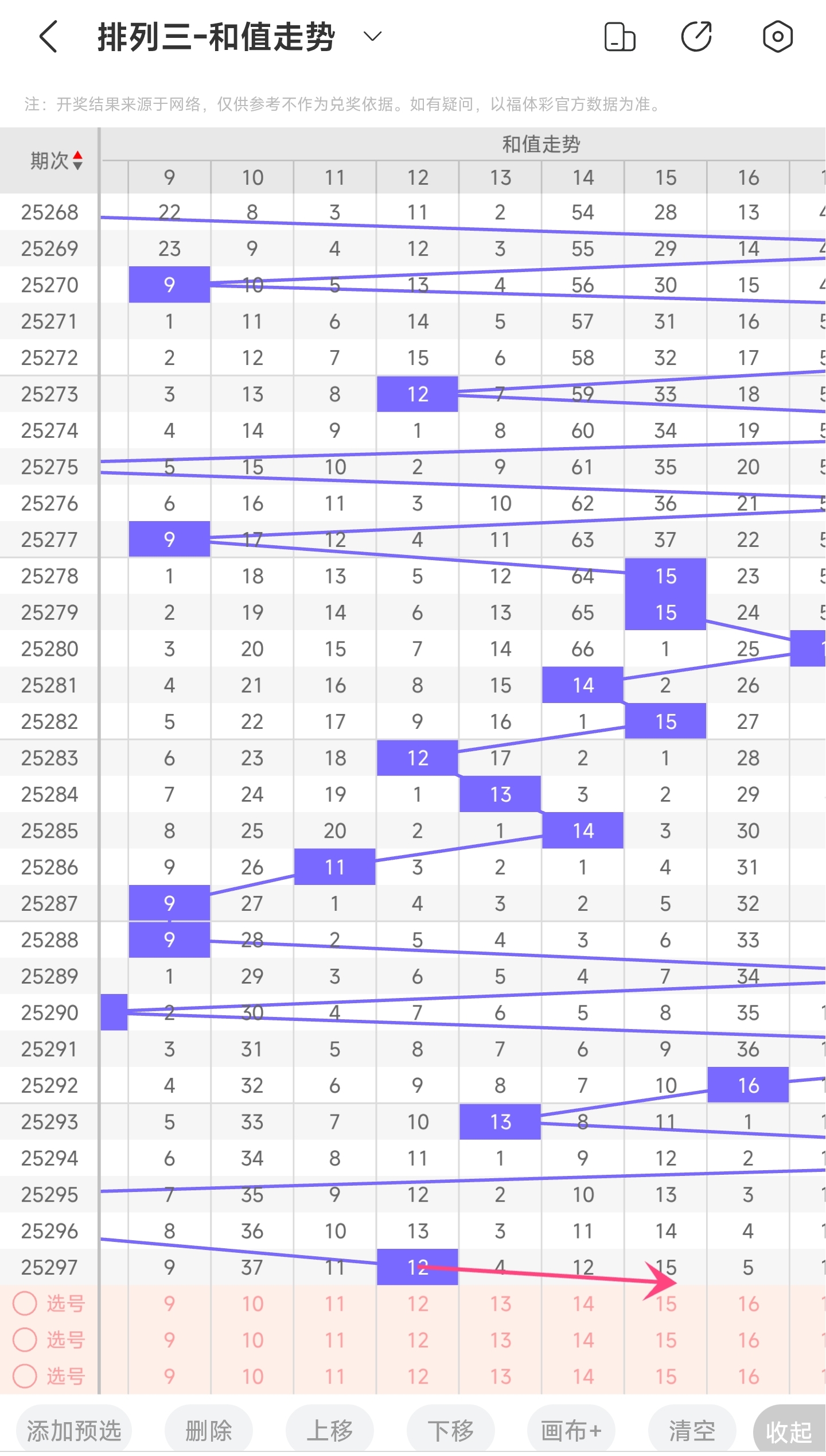 二、通过和值走势分析: