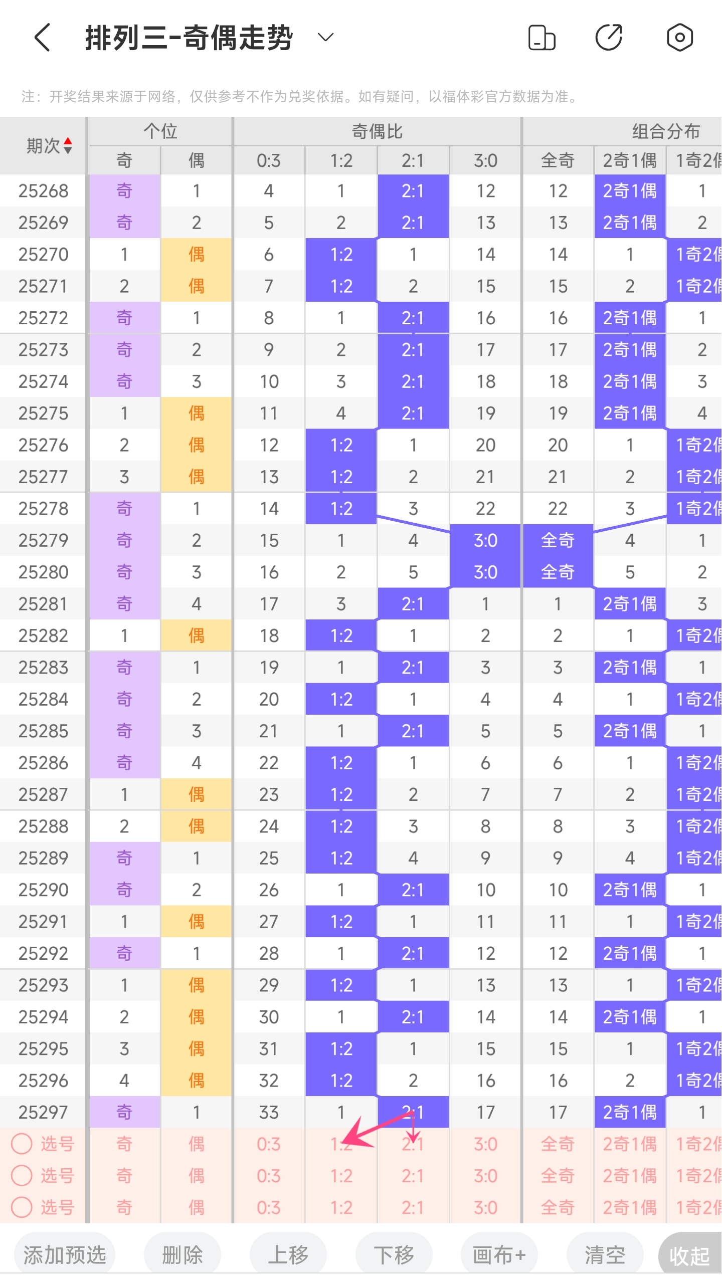 三、通过奇偶走势分析: