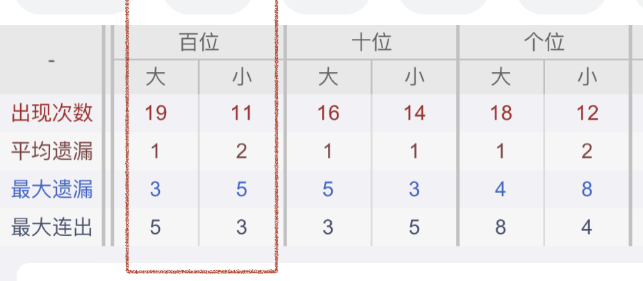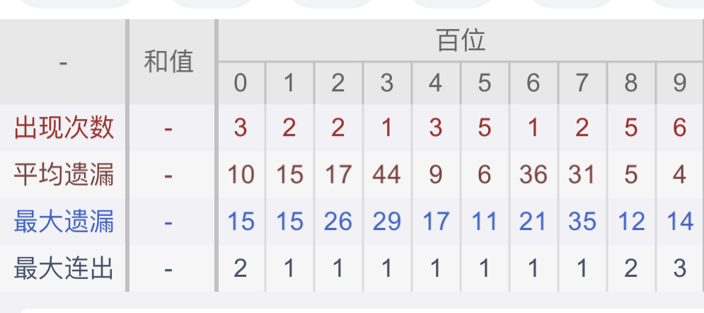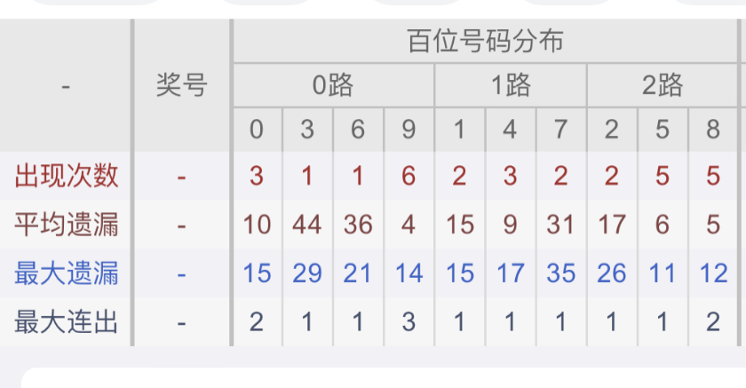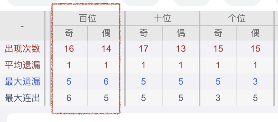 从近30期数据我们可以看出百位1是热码,这个冷热码数据我们结合之后的分析再利用它
