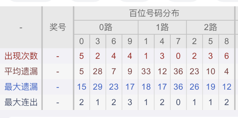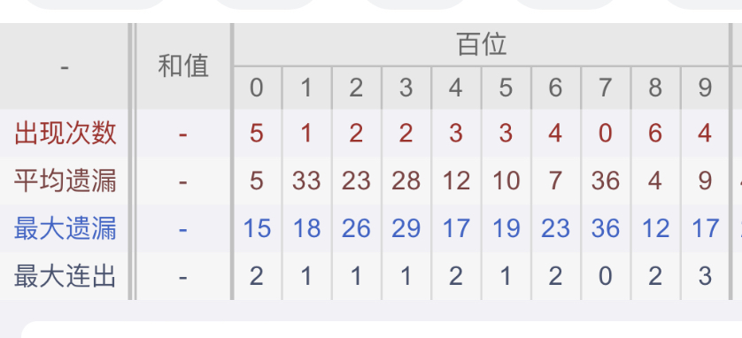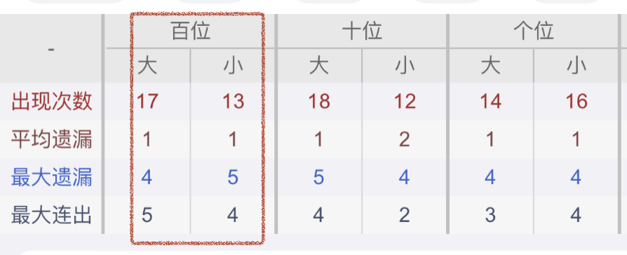 从近30期数据我们可以看出百位1是热码,这个冷热码数据我们结合之后的分析再利用它