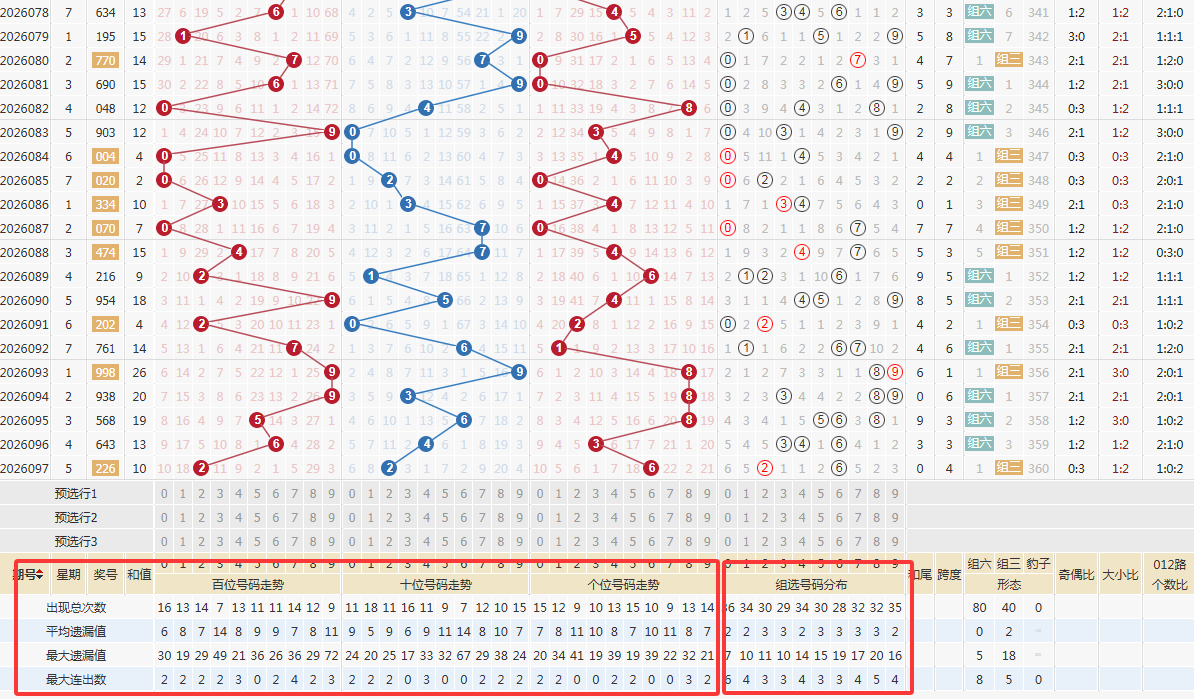 第四步:取近百期数据杀跨度/杀和值尾判断