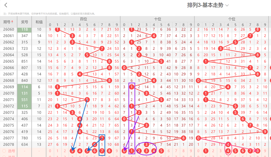 体彩排列3-第079期定位分析如下: