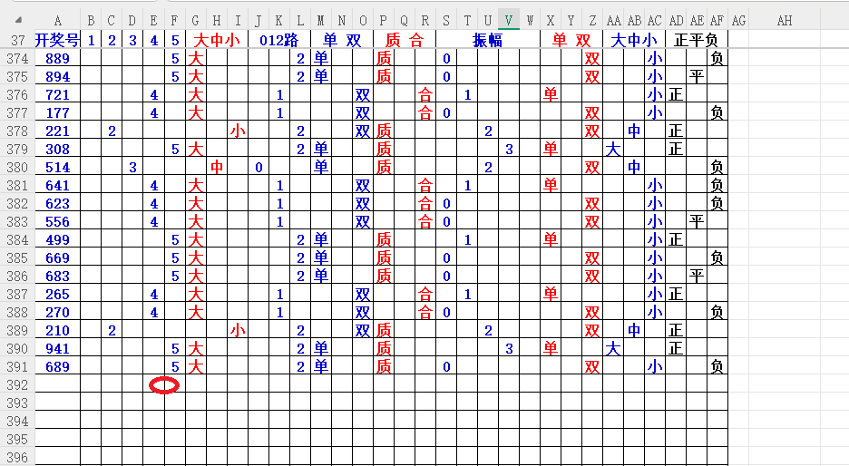 如上图7,012路分析-1路出号的概率还是很大,本期可以从2路号入手5代表89。