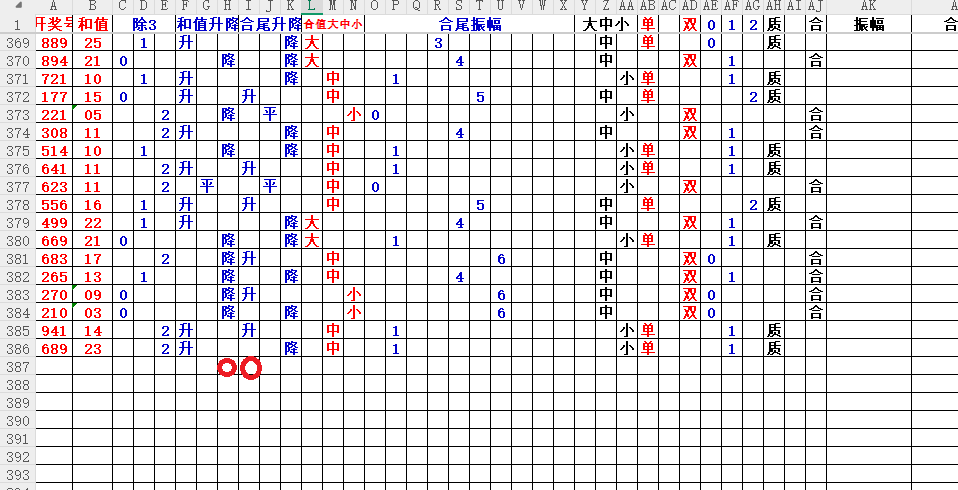如上图3,和值升平降分析,和值降的概率大,小于23和值。