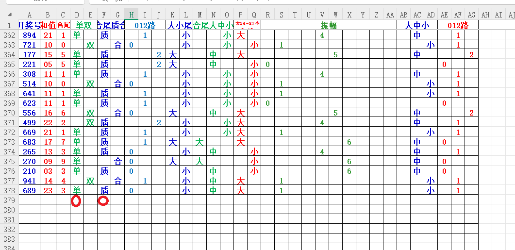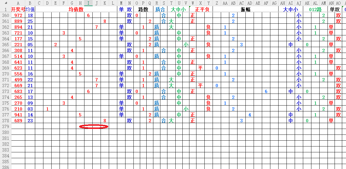 如上图8,012路分析1路出的概率大,本期可以从2路号入手,也就是23数。
