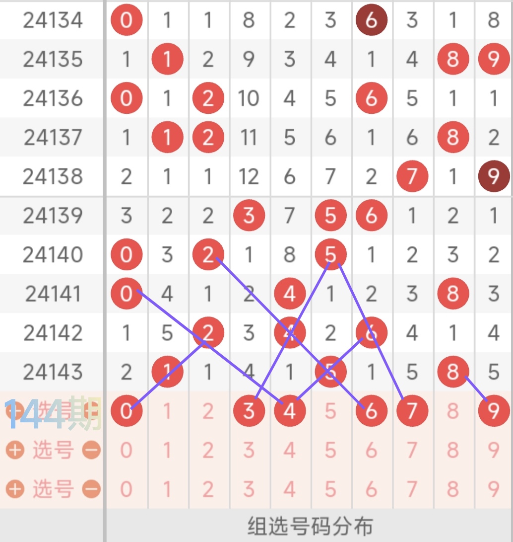 十位:在后半段7~9开出号码,本期防守6、7、9,可能与8形成斜连走势,推测本期可能往中间段3~6开出号码。十位连续四期开出偶数,本期继续关注偶数。