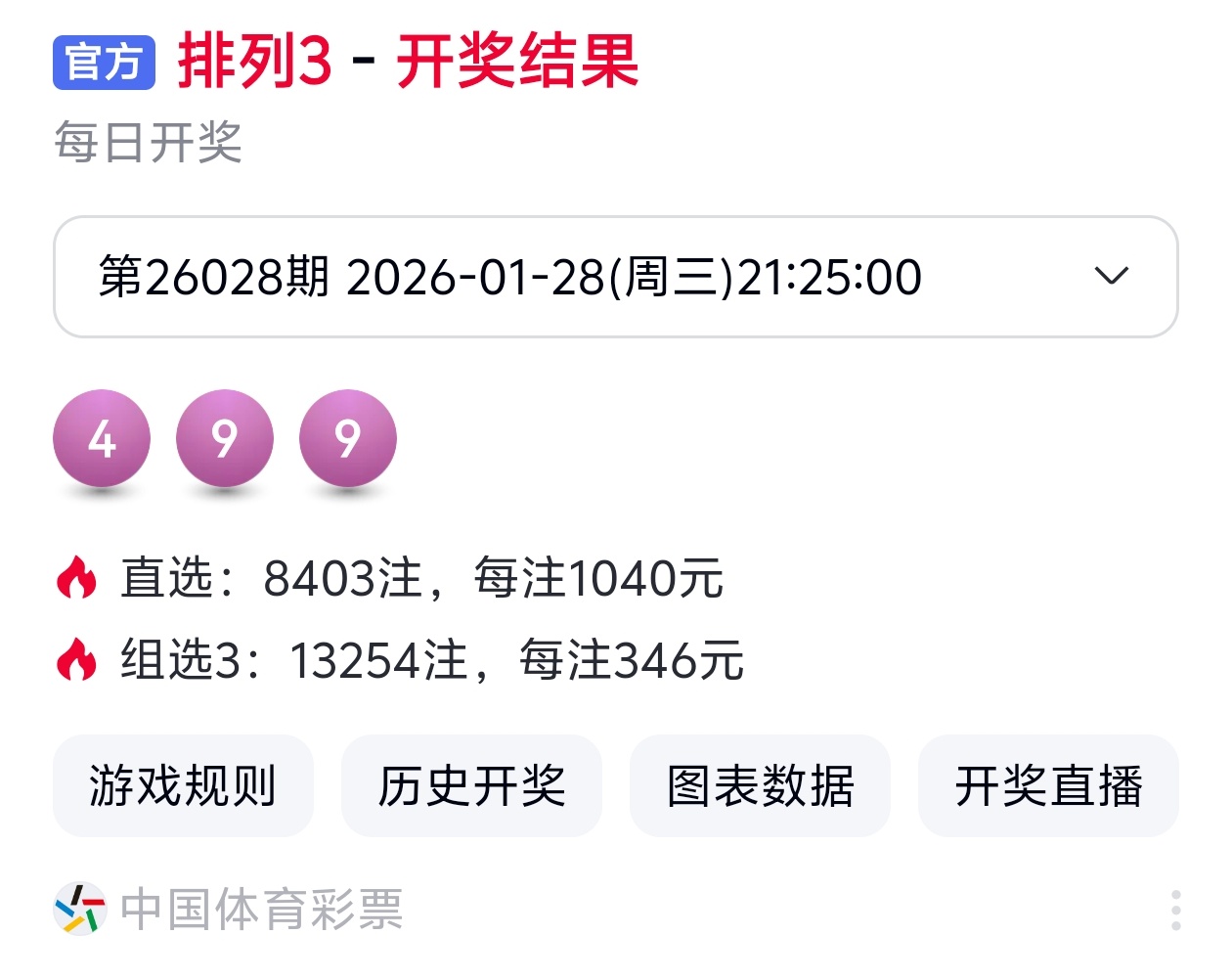 上期开奖号码:499,和值:22,跨度:5,奇偶比:2:1,大小比:2:1,012路比:2:1:0,形态:组三,本期势必拿下,希望能给大家一个靠谱的参考,在大家阅读文章的时候,期望您能动动发财的小手,点点关注,万分感谢,另外也需要提醒大家参考为主,切勿当真,不要盲目跟随!