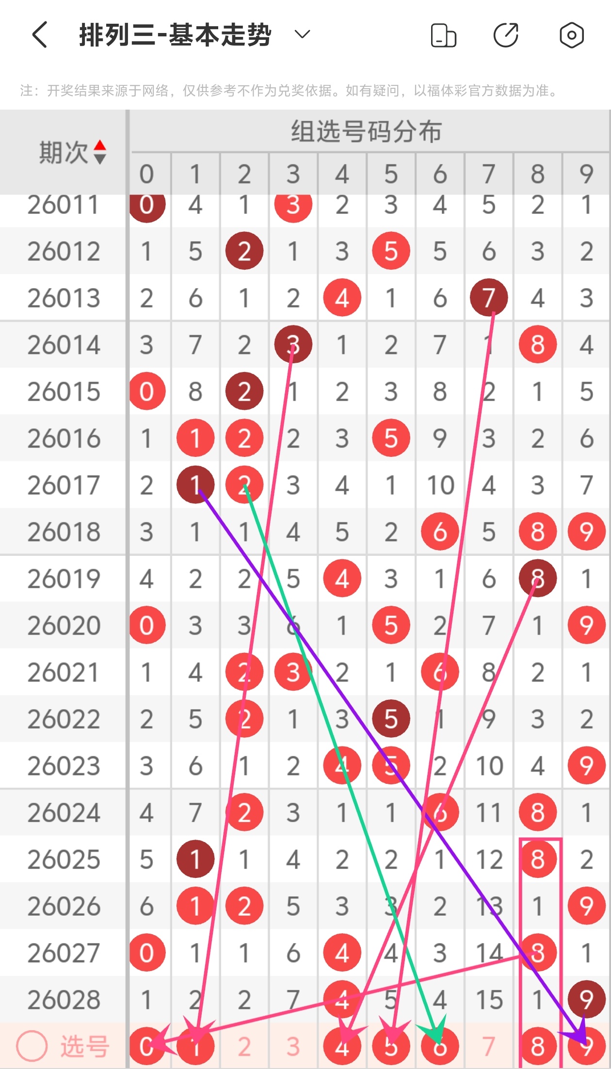 通过以上简单分析,我们看下26029期号码的定位分析: