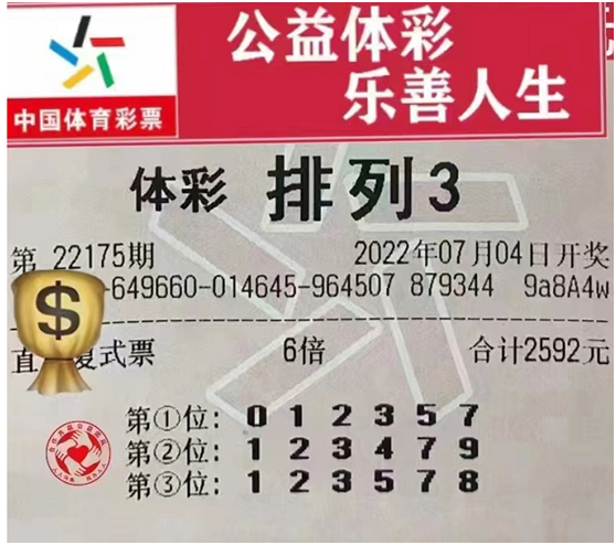 这张票,投注了2592元,复试666定位投注,一共是6倍,如果中出奖金是6240,那么利润就是5988,利润马上高达6000了,也就是说如果本期两张票我都中出,那么利润就将近一万元了,大家可以看到这张复试票,通杀了号码6,这点和复试组选6投注思路是一致的,也就是说今天排三不开出6,今天吃肉的概率就很高哦,此时我信心满满。