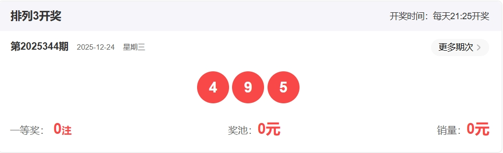 排列三第2025344期开奖回顾:开奖号码:495   形态:组六
