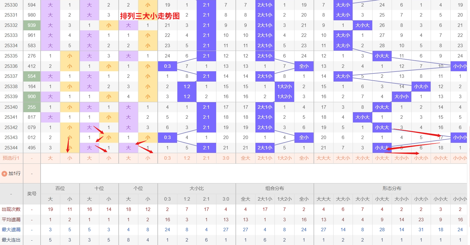 排列三大小走势图