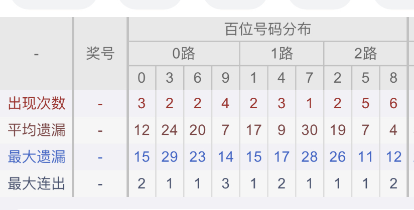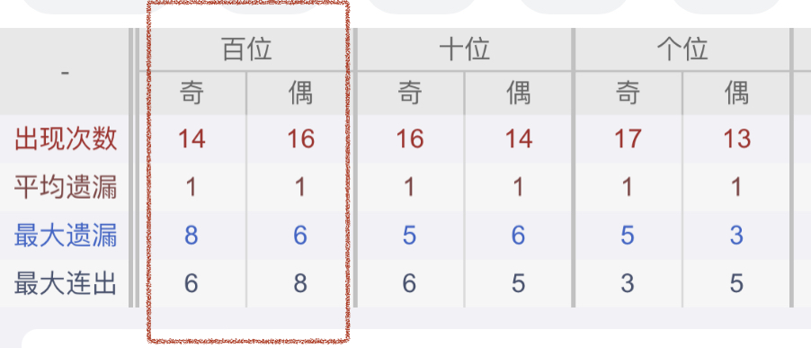 从近30期数据我们可以看出百位1是热码,这个冷热码数据我们结合之后的分析再利用它