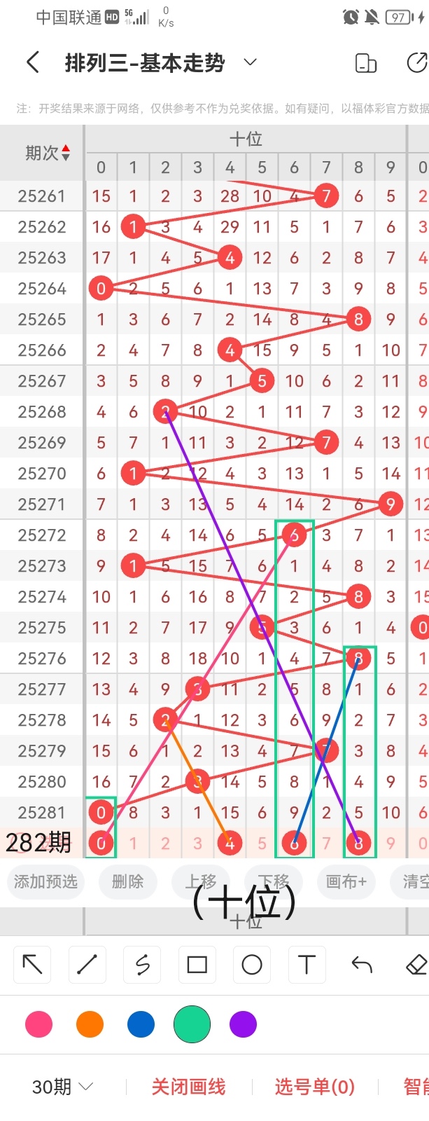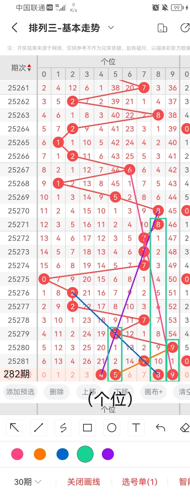 通过以上对上期的简单回顾,下面进入体彩排列三第2025282期(下面简称本期)的选号分析: