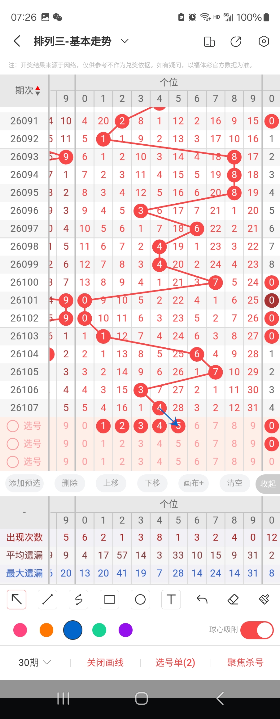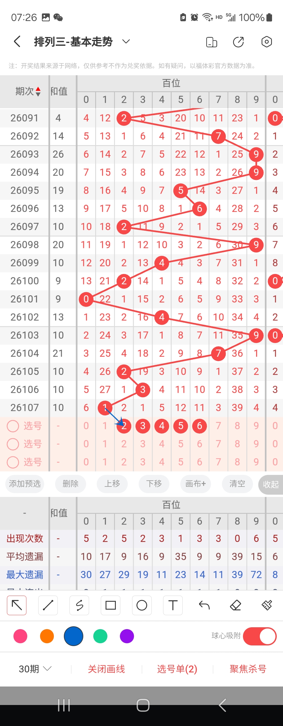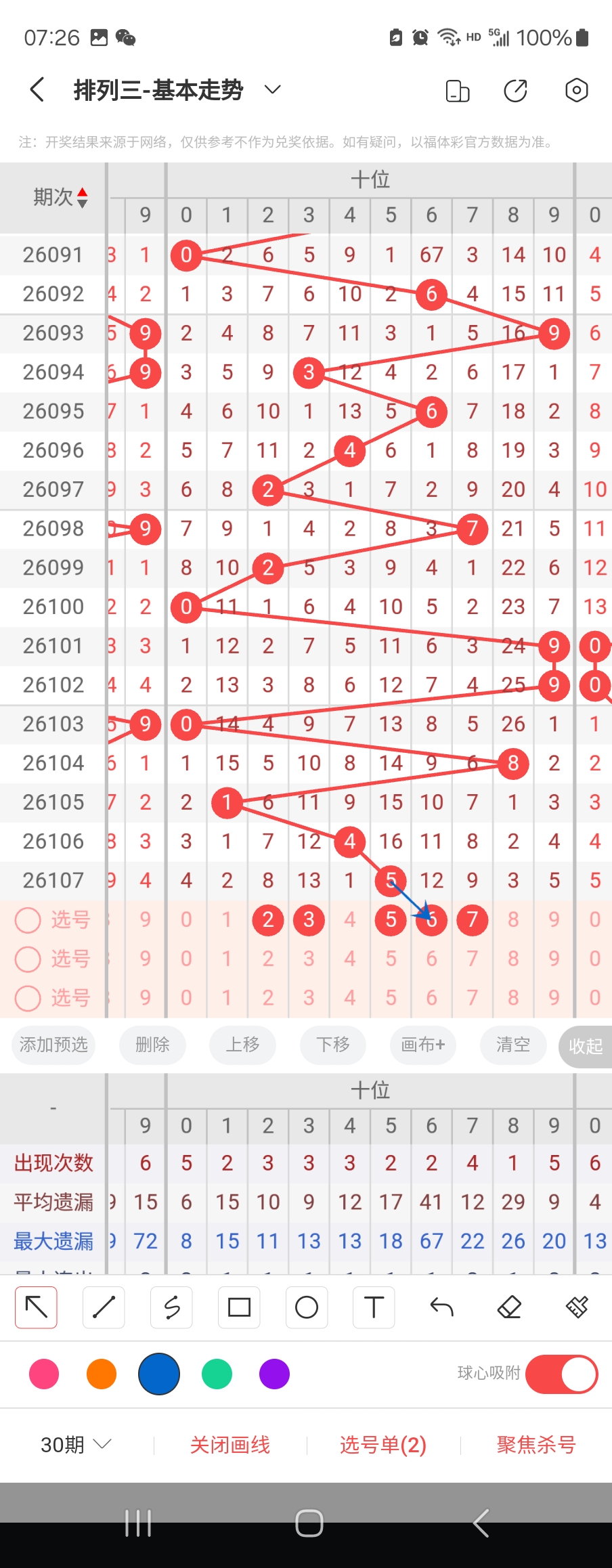 综合上期形态分布利于下期形态选号,约定12357为质,04689为合,147为1路,258为2路,0236为0路,