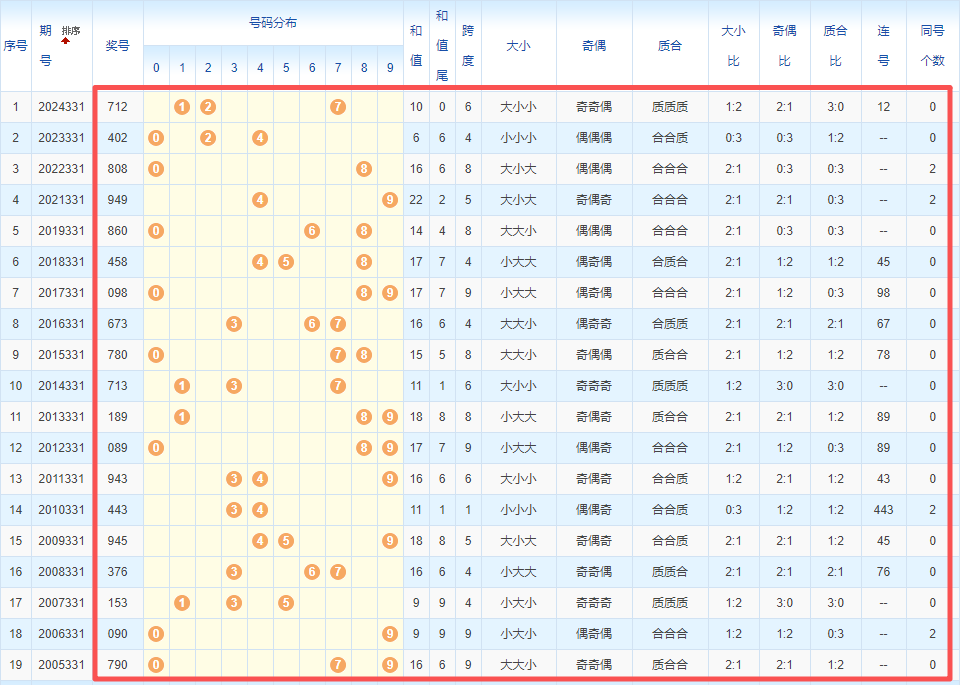 本文分别通过三个方面对本期排列三进行深度分析,这三个方面分别为:一:历史追随、二:往年同期数据、三:近期百十个遗漏值情况。