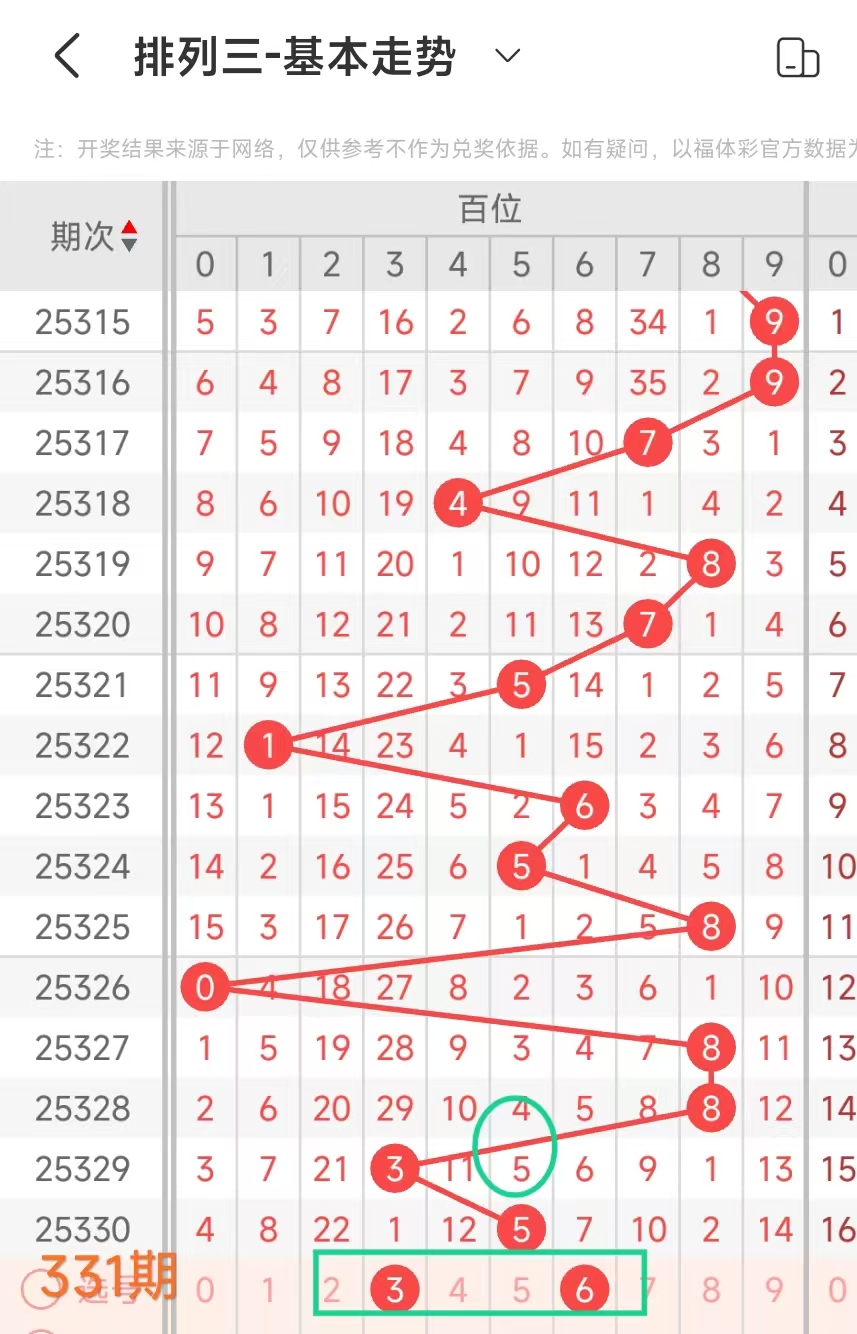 金莱排列3第331期:本期形态看组六,主攻一注单式冲直选