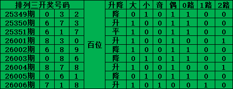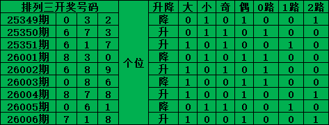 012路分析,上期是2路,本期选择1路/0路:1/3号。