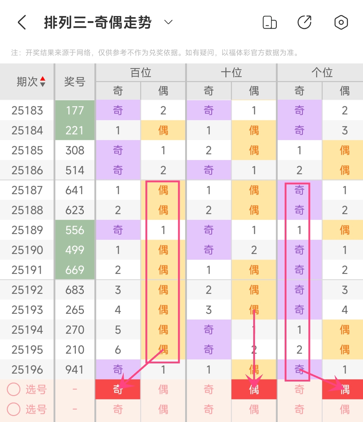 首先让我们回顾一下上期排列3第2025196期开奖号码为941,为组六形态,大小比为1:2,奇偶比为2:1,和值为14,跨度为8。