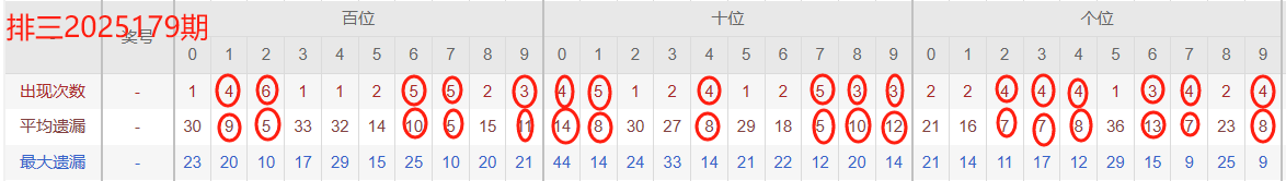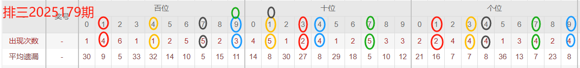 2025177期开奖号码977,我们可以看出近30期百位9出现3次,十位7出现5次,个位7出现4次(较178期减1)。