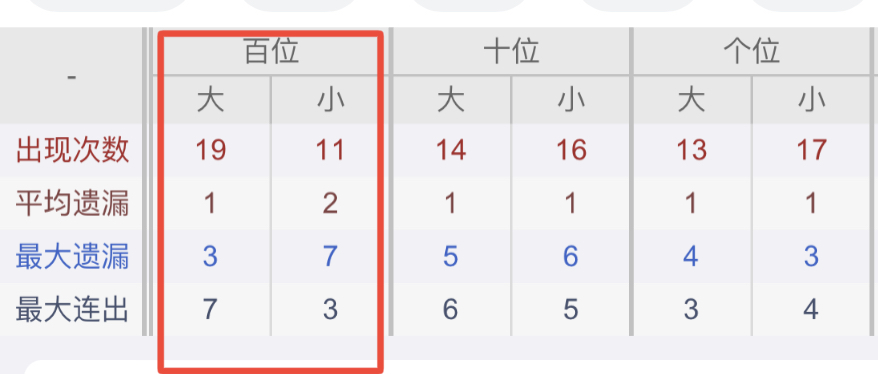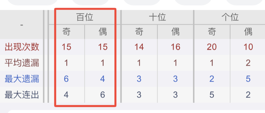 从近30期数据我们可以看出百位6是热码,这个冷热码数据我们结合之后的分析再利用它
