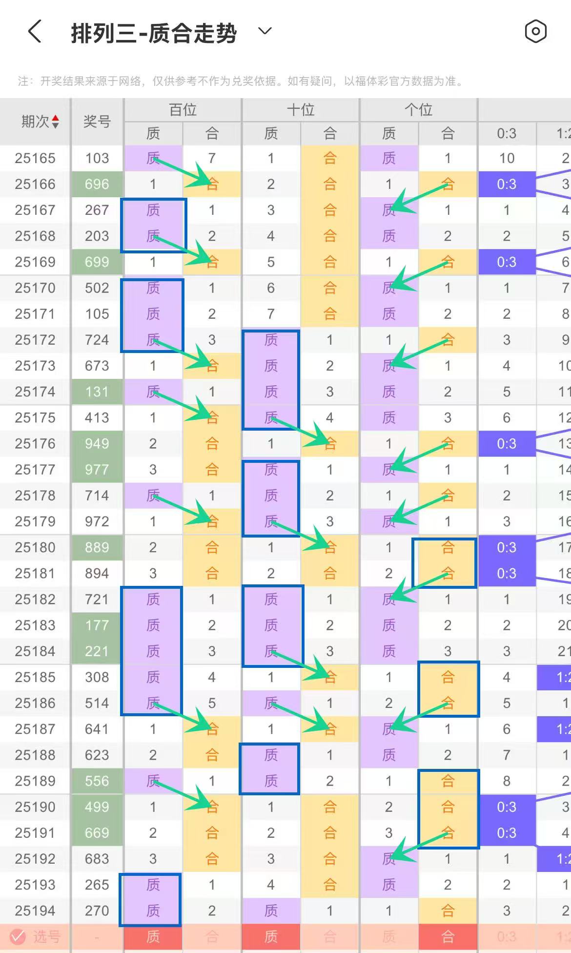 根据上期开出回补合数分析,个位质合形态中合数连下次数多,具备稳定持续输出能力,是个位质合的基础形态之一,回补箭头驱动质数回归,打破合数连下局面,质数回补后,又可能进入新的连下循环,整体看,个位以合数连下为常见趋势,回补成为形态变化的关键变量,需关注合数连下周期,不同周期内,合数连下的频率、间隔有差异,同时,回补时质数的表现强度也影响走势,若质数强势回补,或扭转个位质合形态,若质数弱势回补,合数大概率再度连下,本期参考合数连下(04689)