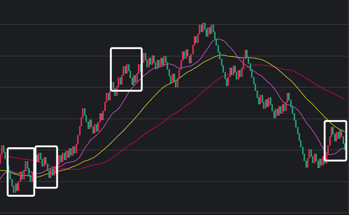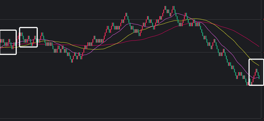 可以看到一些规律,在白框中,如果一致,那么接下来这些跨度也会出。