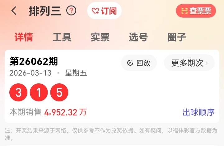 下面是我对2026063期体彩排列三的分析和推荐,希望通过我的分析能让大家今晚收获满满!