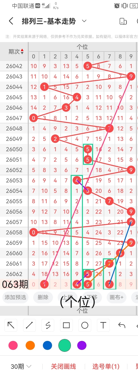 通过以上对上期的简单回顾,下面进入体彩排列三第2026063期(下面简称本期)的选号分析: