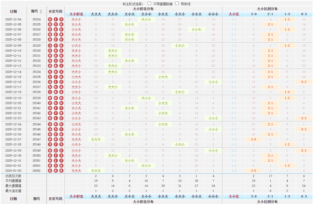 排列三大小号码分析数据统计图表
