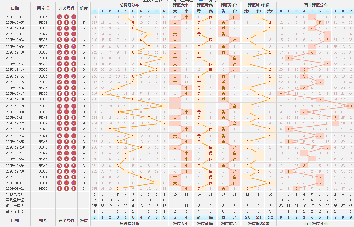 排列三跨度分析数据统计图表
