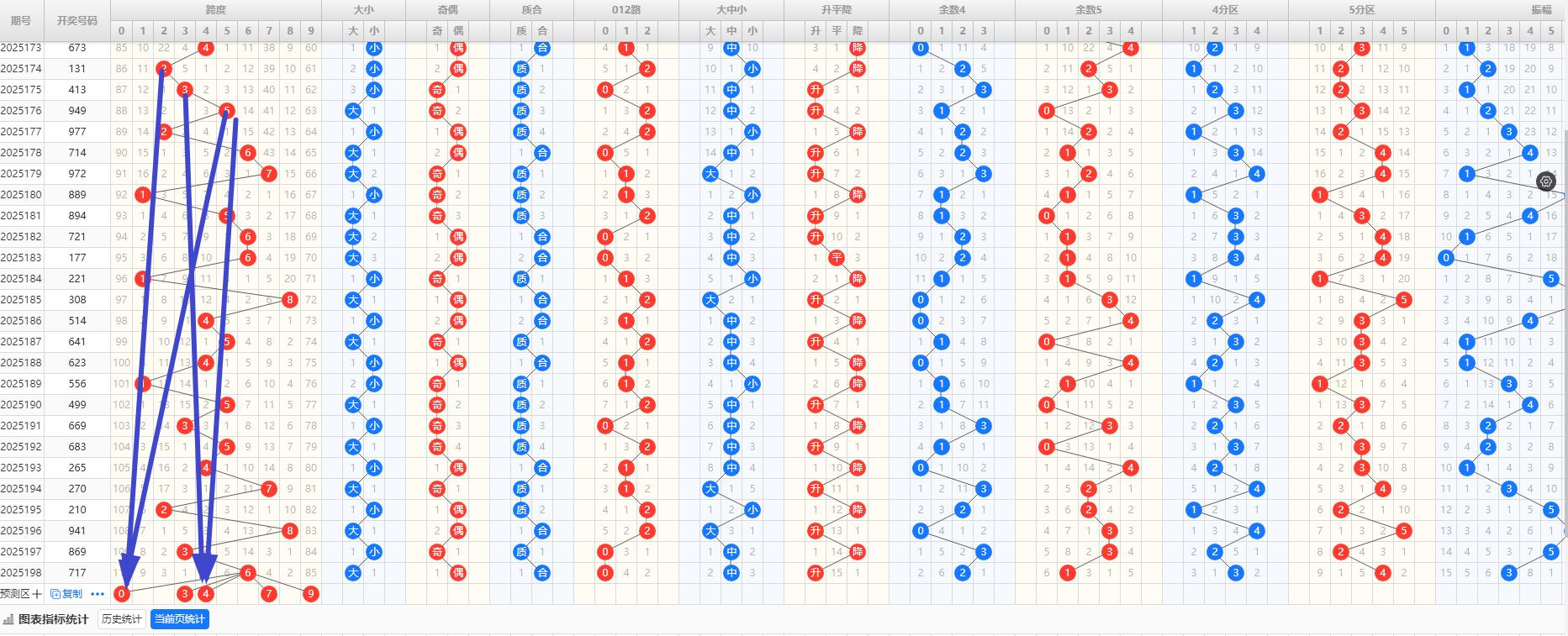 和值预判分析 从近期的和值走势来看,小数和值与大数和值呈现出交替出现的趋势。012路和值的比例也相对均衡。因此,预测本期可能开出小数、0路和奇数的和值。具体和值推荐0.3.4.5.5.6.7.9.10.等。其中,作为参考和值10.具有较高的可能性。