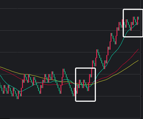 可以看到一些规律,在粉框中,如果一致,那么接下来这些跨度也会出。