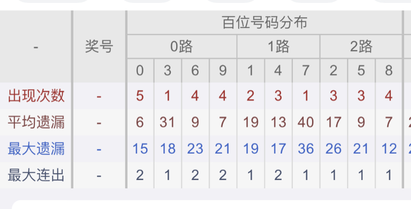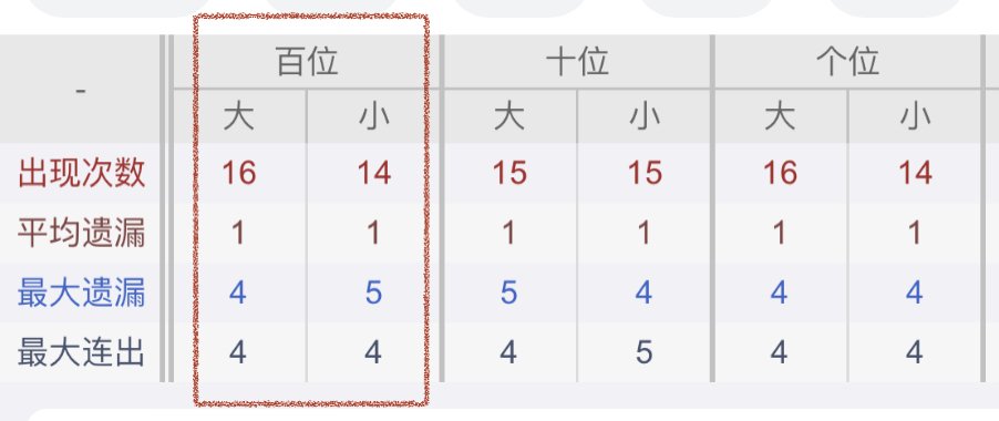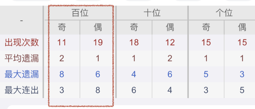 从近30期数据我们可以看出百位1是热码,这个冷热码数据我们结合之后的分析再利用它