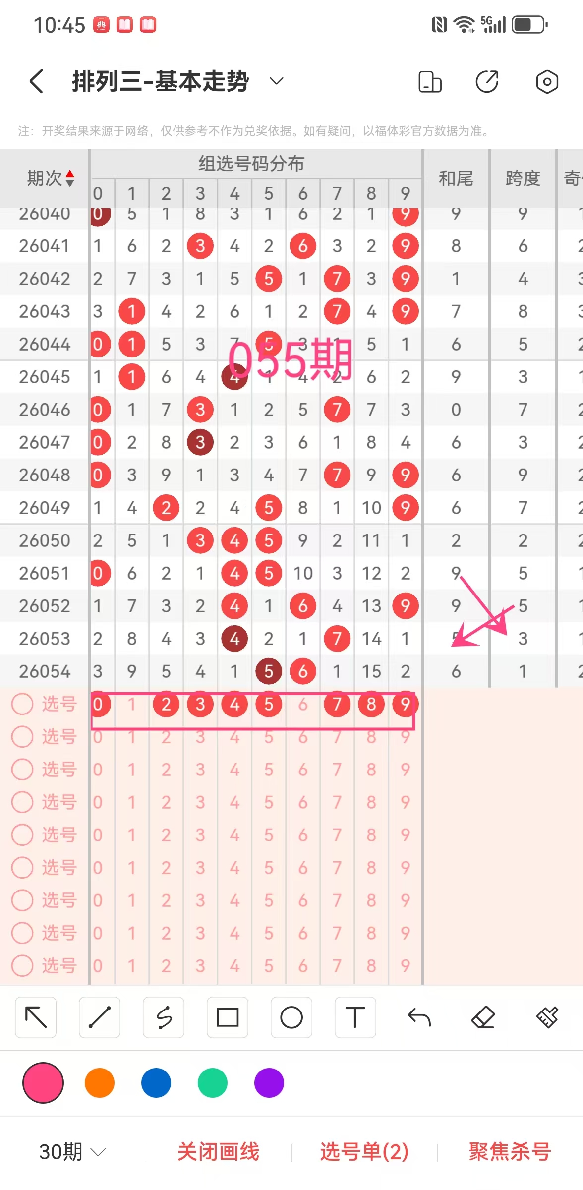 体彩排列三055期,近4期中3期组选2期直选,条件稳定输出