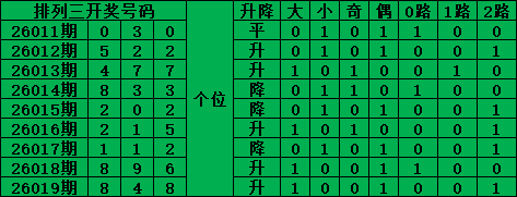 排列三是从0-9每期开出3个号码,截至2026019期三个位置最大遗漏的是32期的:个位的4号。