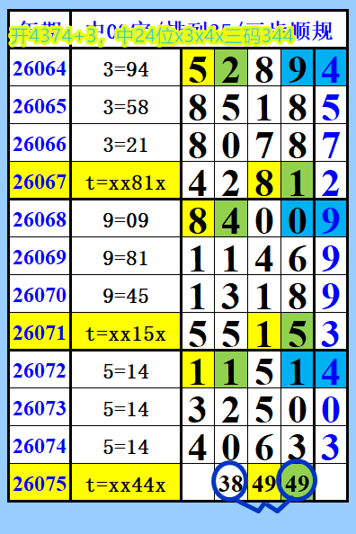 排列35第26076综合图文),单选推荐,视频上期中24位x3x4x三码344