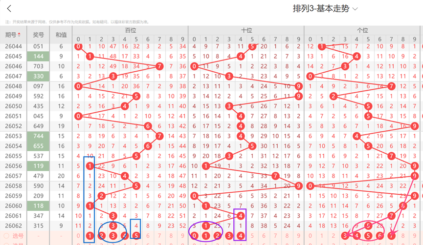体彩排列3-第063期定位分析如下: