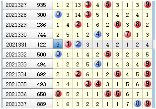 2021329期开奖号码286,2021330期开奖号码是744,它们百十和就是2+4=3 ,331期开奖122 杀3正确,定位杀和胆码杀都是正确。
