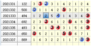 2021330期开奖号码744,2021331期开奖号码是122,它们百十和就是7+2=9,332期开奖500 杀9正确,定位杀和胆码杀都是正确。