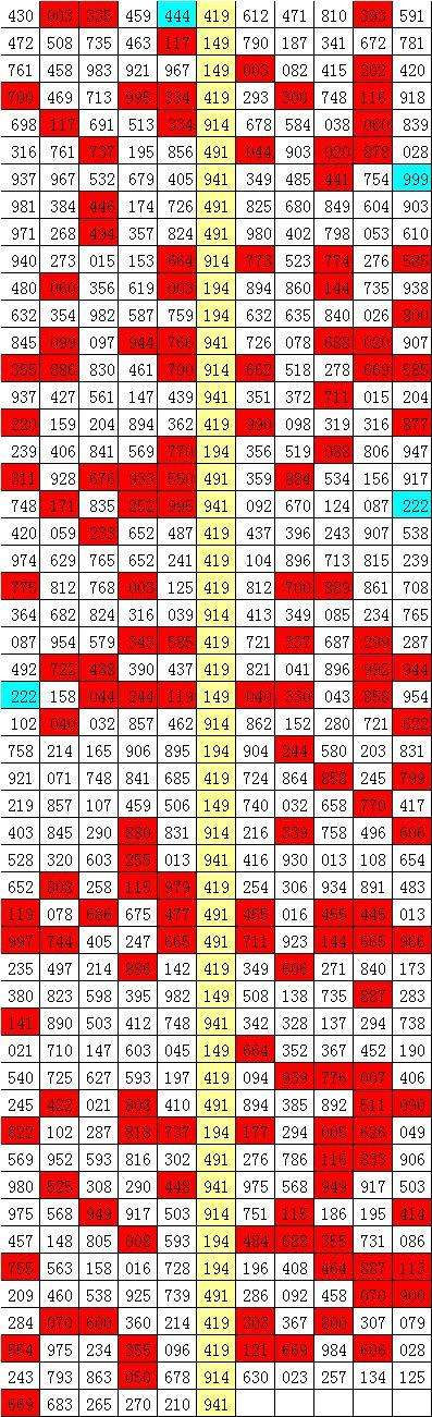 排列三第2025196期开出直选号码941,历史上该号码直选出现8次,前7次出现之后,下期开出号码为:349、726、351、092、416、342、975,其前后5期分别开出奖号:(统计见下表)